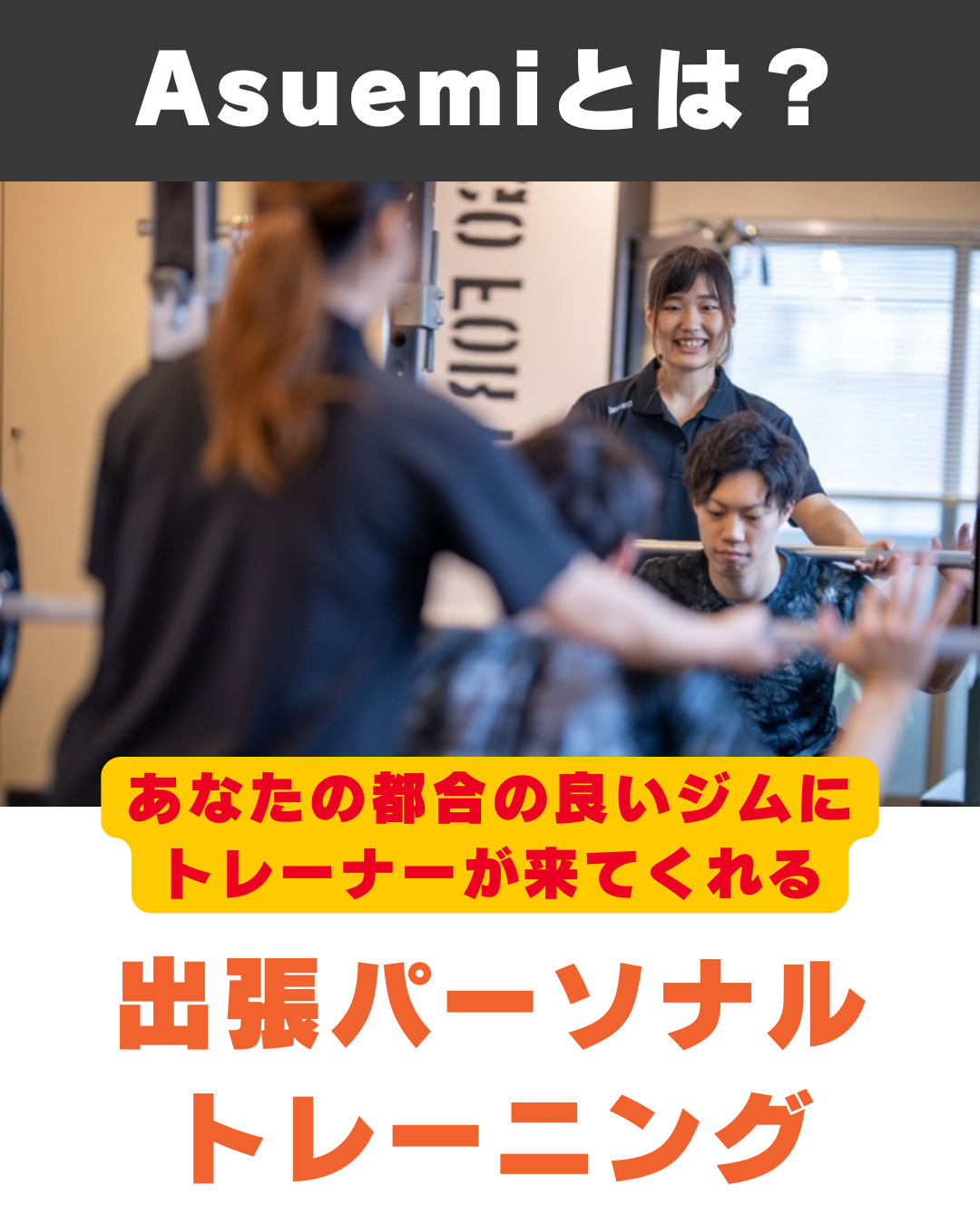 大丈夫です。Asuemiをご利用される多くのお客様が筋トレ初心者です。プロのトレーナーがお客様に合わせて丁寧なレクチャーをいたします。